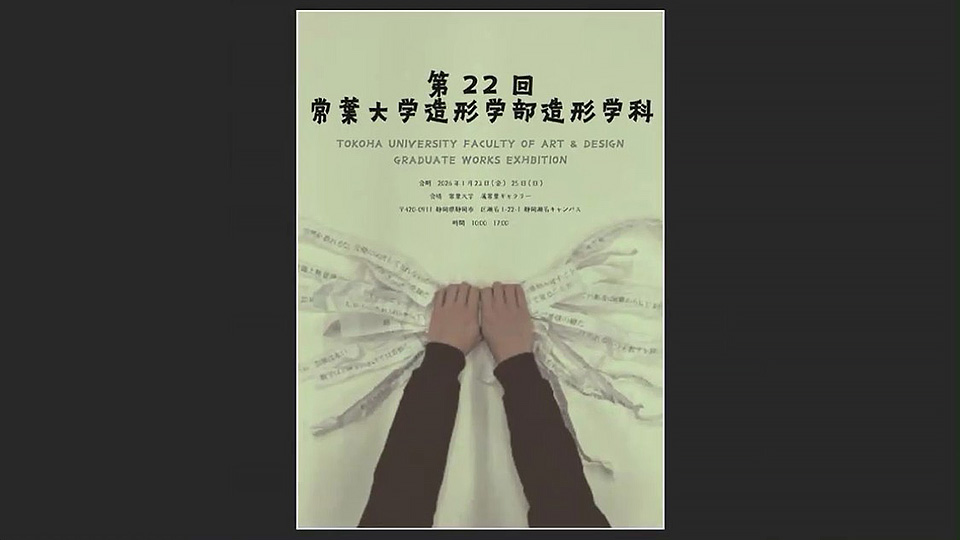 いや、本当に一応一個ゼミで作った作品がそれが一番かなっていう感じなんですけど。ゼミの企画なんですけど、卒展(卒業制作展)のポスターを作ろうみたいな課題が出てて、その中の作品です。一応グループ5人だったんですけど、私たち3年2年で分かれて、私たち3年のグループで制作したものになります。